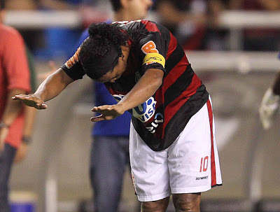 Não poderia deixar de registrar a estréia do Ronaldinho Gaúcho (R10) no MENGÃO, ontem, 02 de fevereiro. Mesmo não estando no melhor de sua forma física, o craque teve lampejos de genialidade e encantou a torcida por sua disposição em campo. Chutou três vezes ao gol e quase marcou numa cobrança de falta. Nos 94 minutos de jogo, o R10, correu 8,7 km.