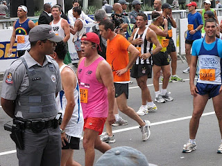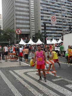 No meu Garmin a largada deu-se às 17h. No primeiro quilômetro muito tumulto e atropelos, por conta do trânsito de corredores mais lentos e fantasiados, que insistem de largar bem na frente. Não dá para correr no ritmo planejado. Mantive a calma e passei nele com 5min33s. Na descida da Consolação já dava para correr num ritmo melhor, mas me segurei para não cometer exageros e sofrer mais na frente. Completei o segundo quilômetro com 10min43s.