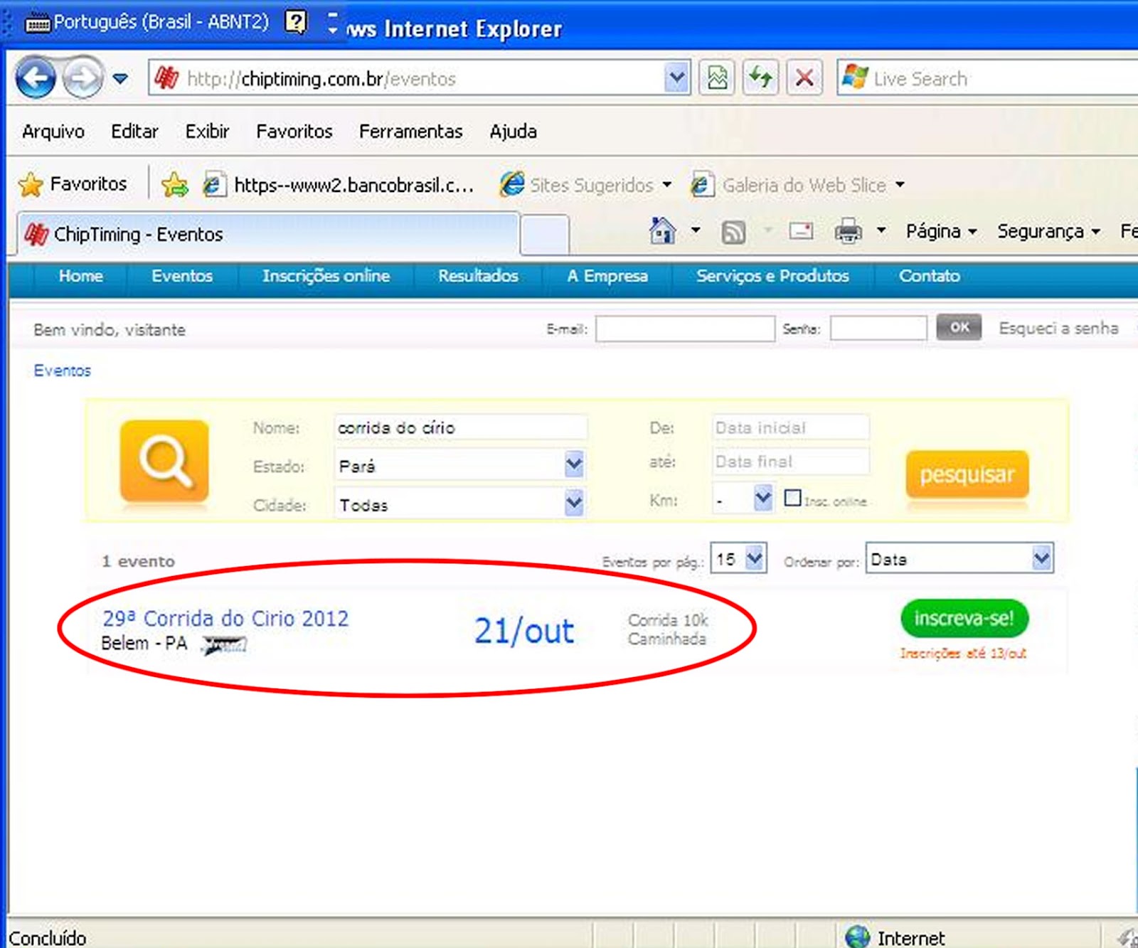 Para minha surpresa, ao acessar a página da Chiptiming na internet, verifiquei que a data informada para a Corrida do Círio é o dia 21 de outubro (veja imagem). E agora, o que fazer? Qual a data correta da edição 2012 da Corrida do Círio?